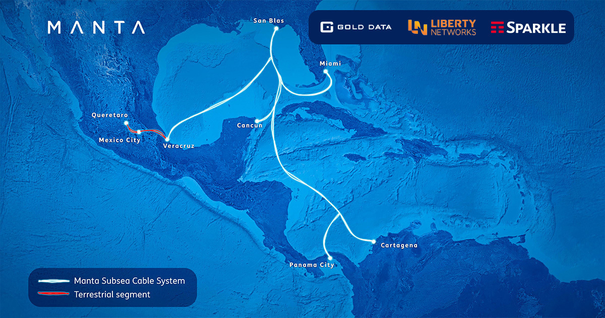 Liberty Networks, Gold Data, and Sparkle will land the MANTA subsea cable system in Cancún and Veracruz through neutral interconnection facilities at MDC Data Centers.