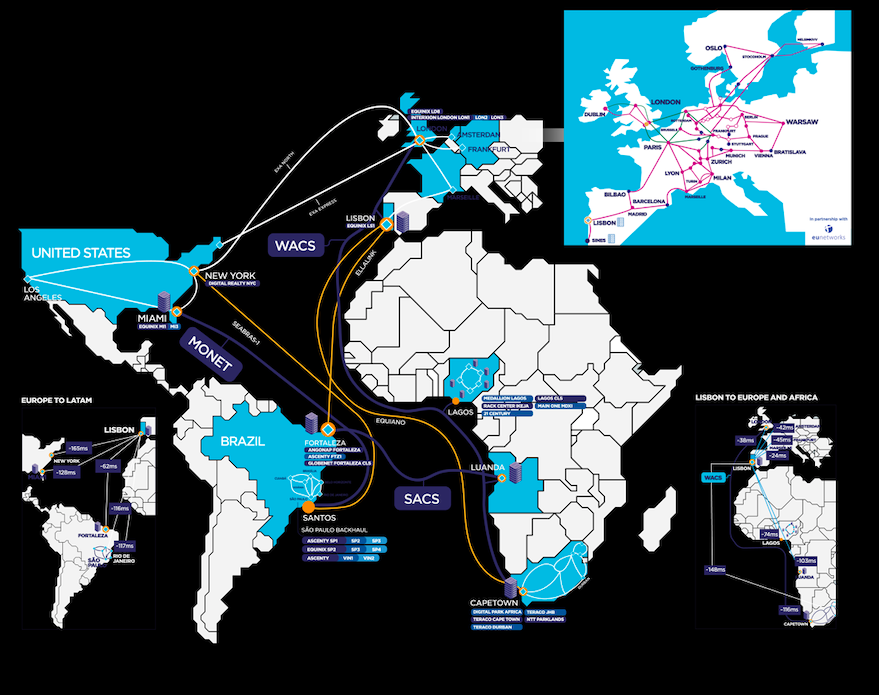 Angola Cables is an internationally established ICT and digital solutions and network services provider. The company specializes in connectivity solutions for the wholesale market and offers tailored digital services and solutions across multiple industries, including Cloud resources for the corporate enterprise sector. Known for its innovation, Angola Cables operates a robust global backbone network, providing access to major IXPs, Tier I operators, and global content providers. With more than 30 PoPs and connections to 1000+ interconnected Data Centres and 6000 peering agreements, traffic over its international network is in excess of 18 500 Tbps. The company has its own submarine cable network spanning over 33,000 kilometres (WACS, SACS, and MONET) and extends its services to over 50,000 kilometres through partner cables, connecting the Americas, Africa, Europe, and Asia. Additionally, the company operates two world-class Data Centres, AngoNAP Fortaleza in Brazil and AngoNAP Luanda in Angola. Angola Cables also manages PIX in Brazil and AngonIX in Angola – one of the leading internet traffic exchange points in Africa that directly connects to over 21 IXPs worldwide.